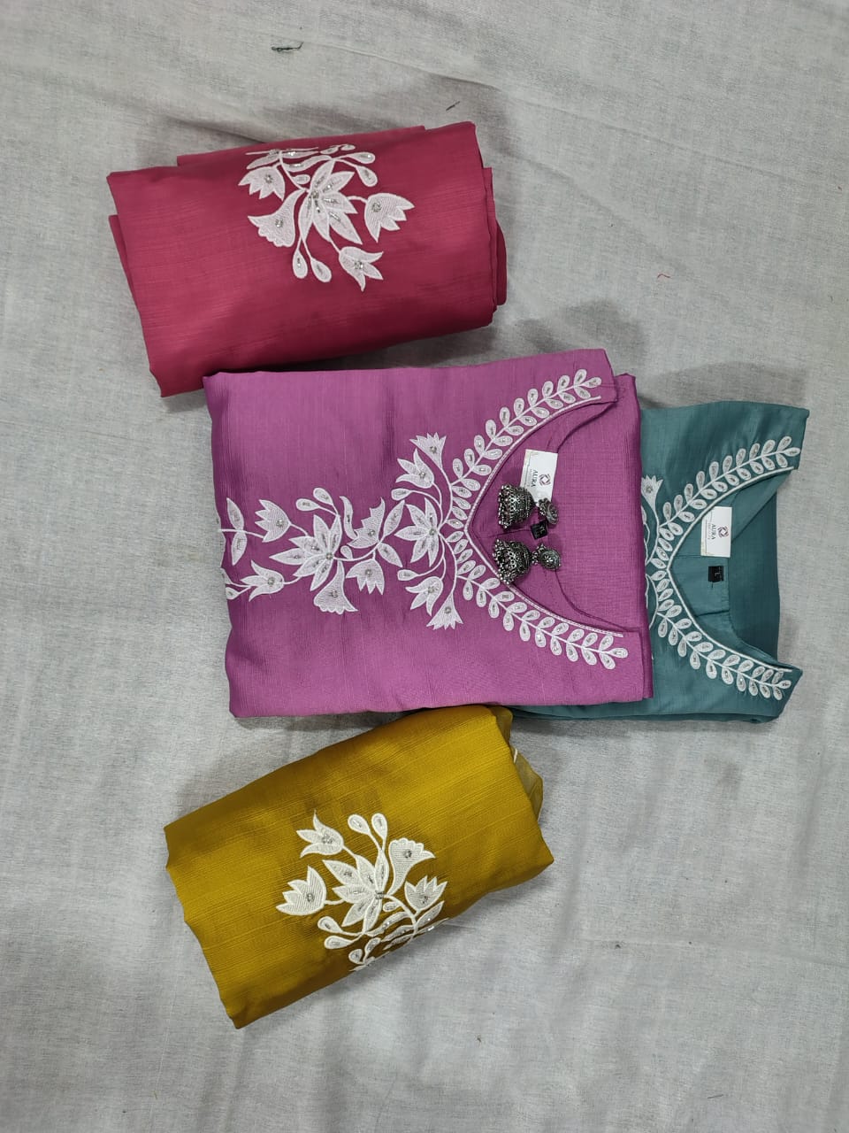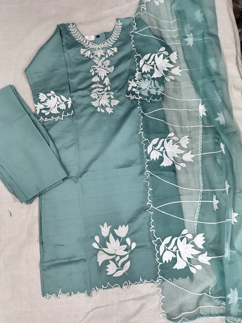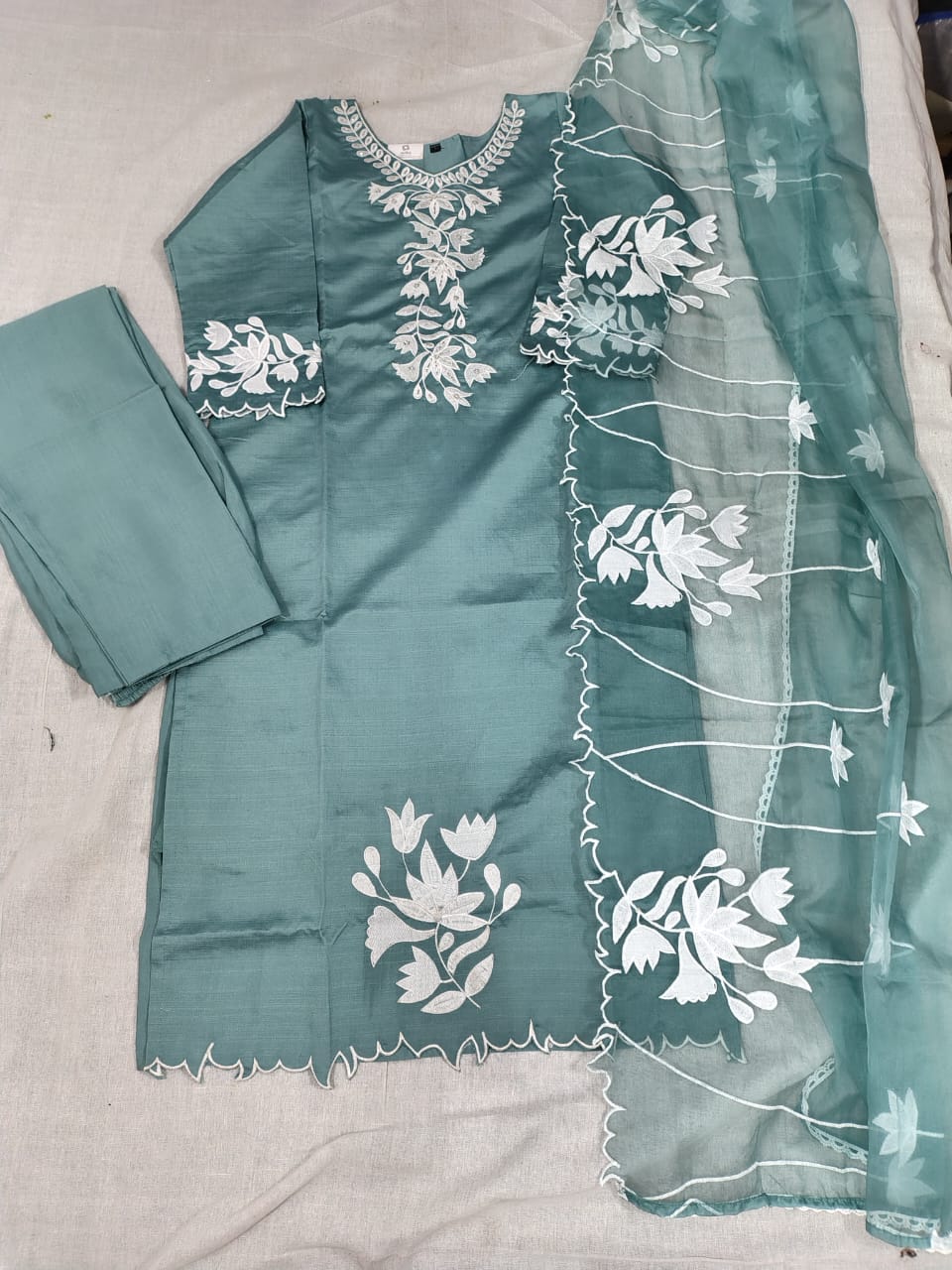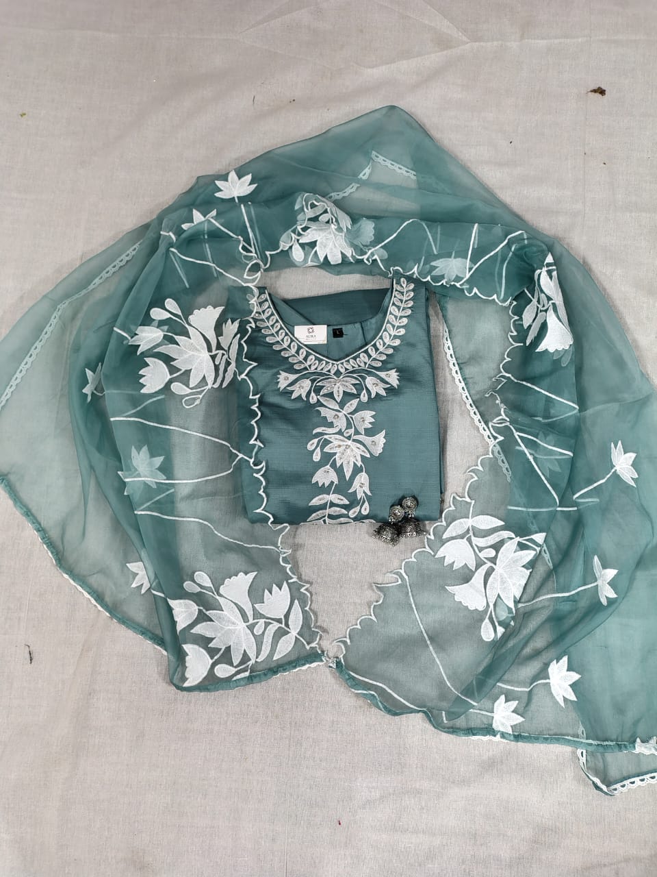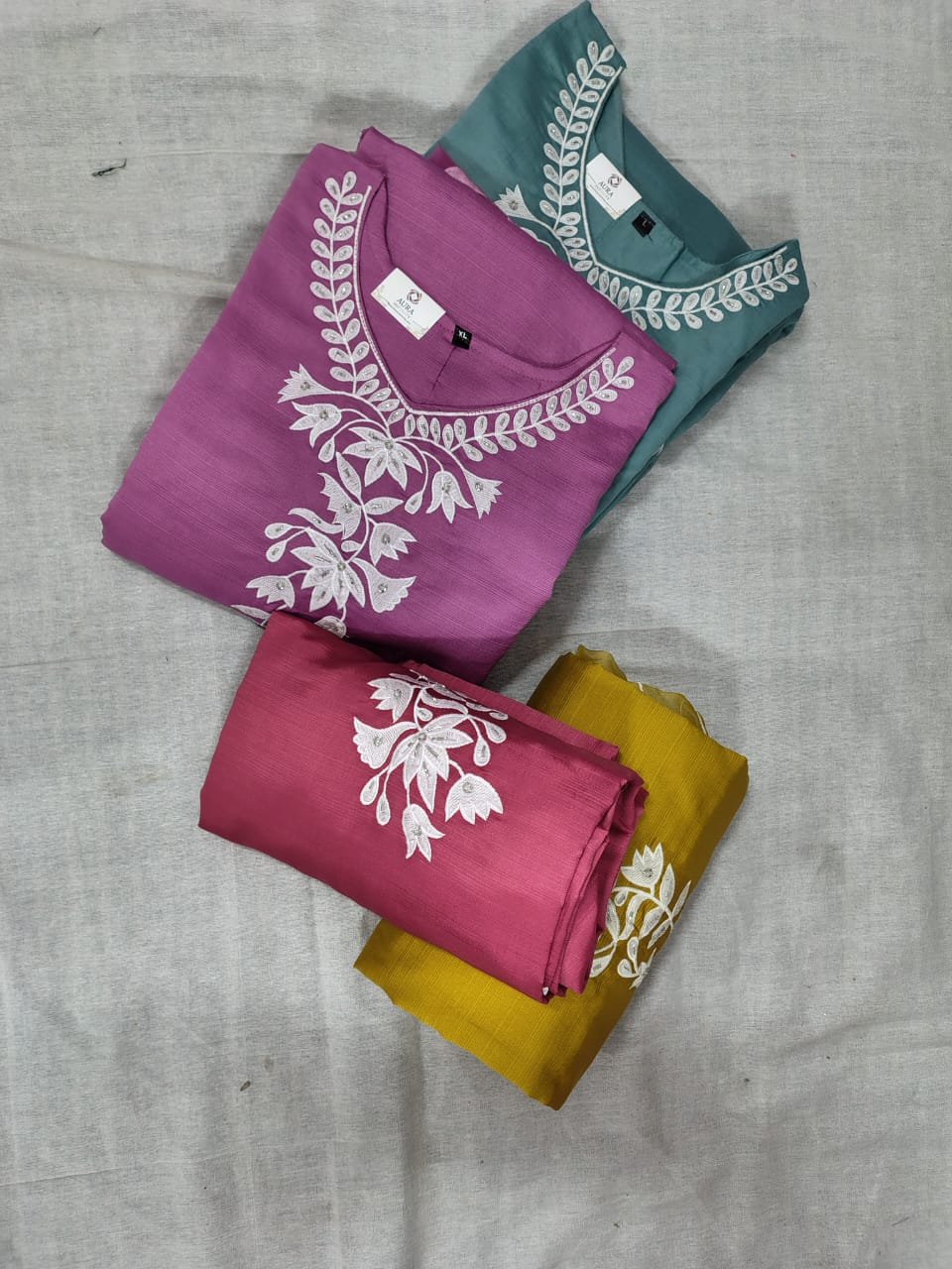 • Kurti: Tailored from high-quality Roman Silk, the kurti features a smooth, flowy texture with refined detailing. It offers a flattering fit suitable for festive occasions, office wear, or casual gatherings.