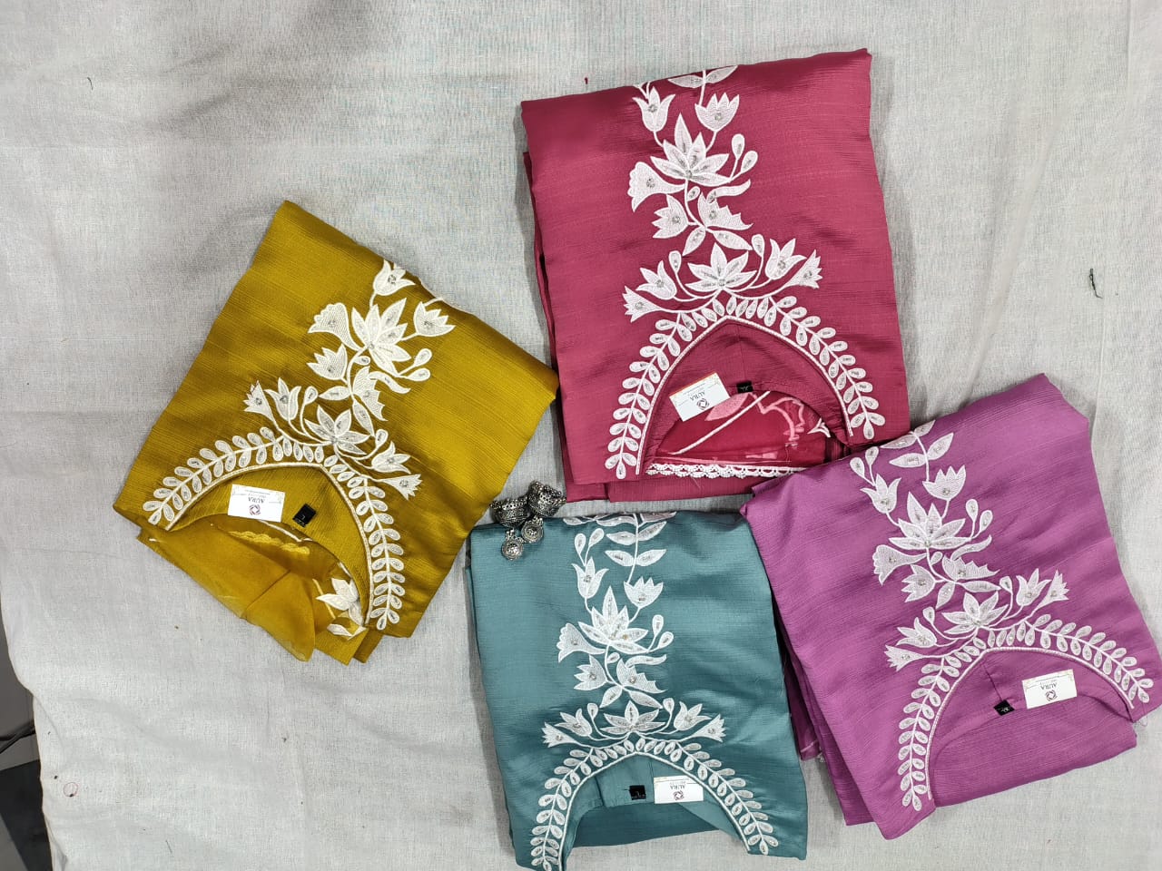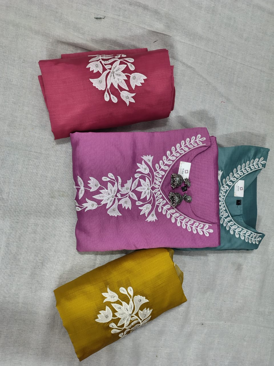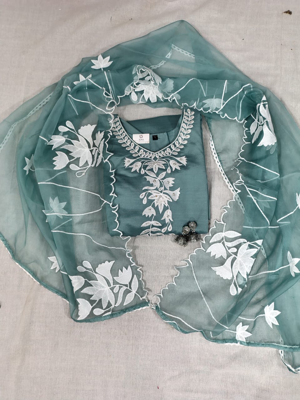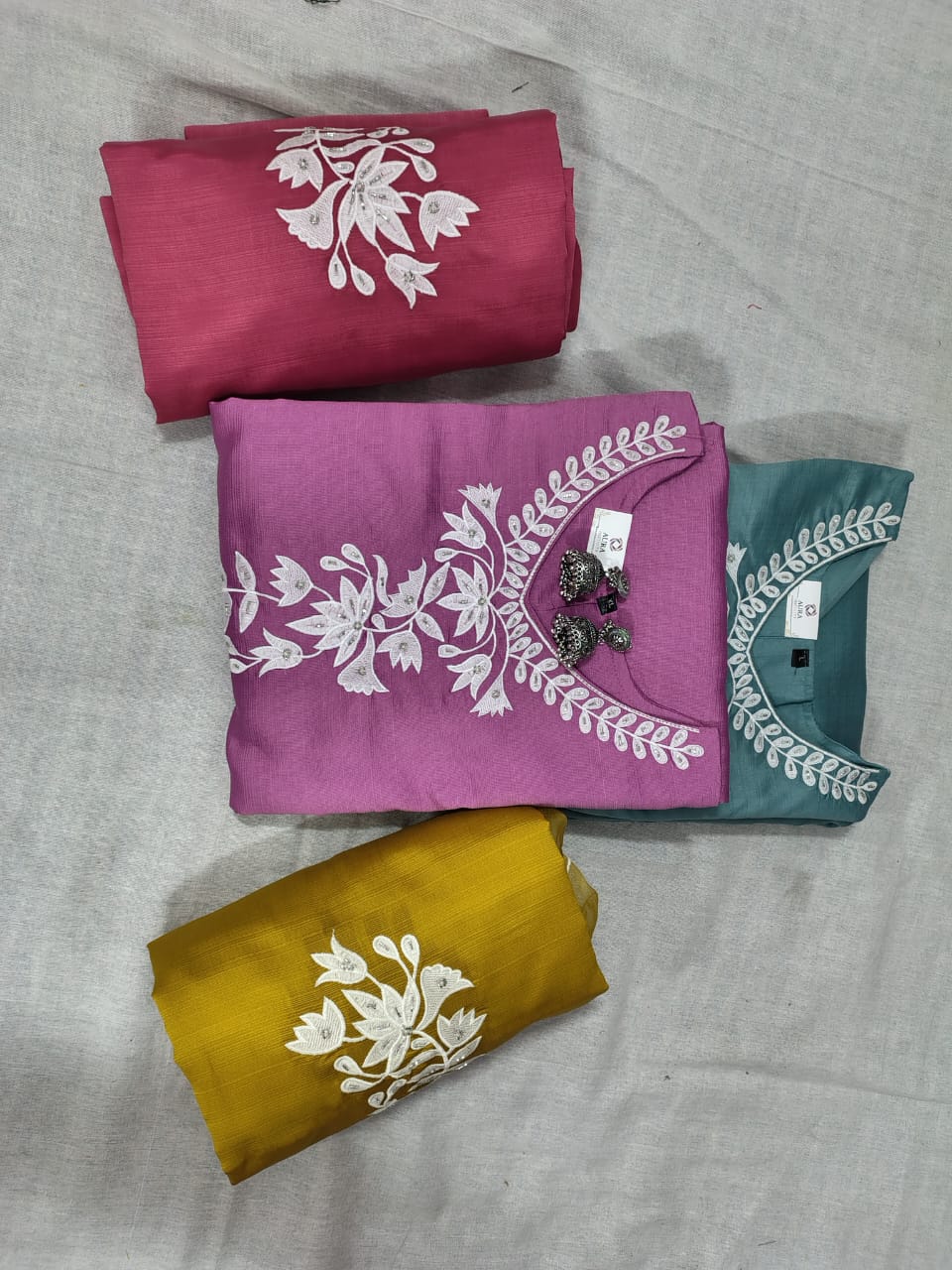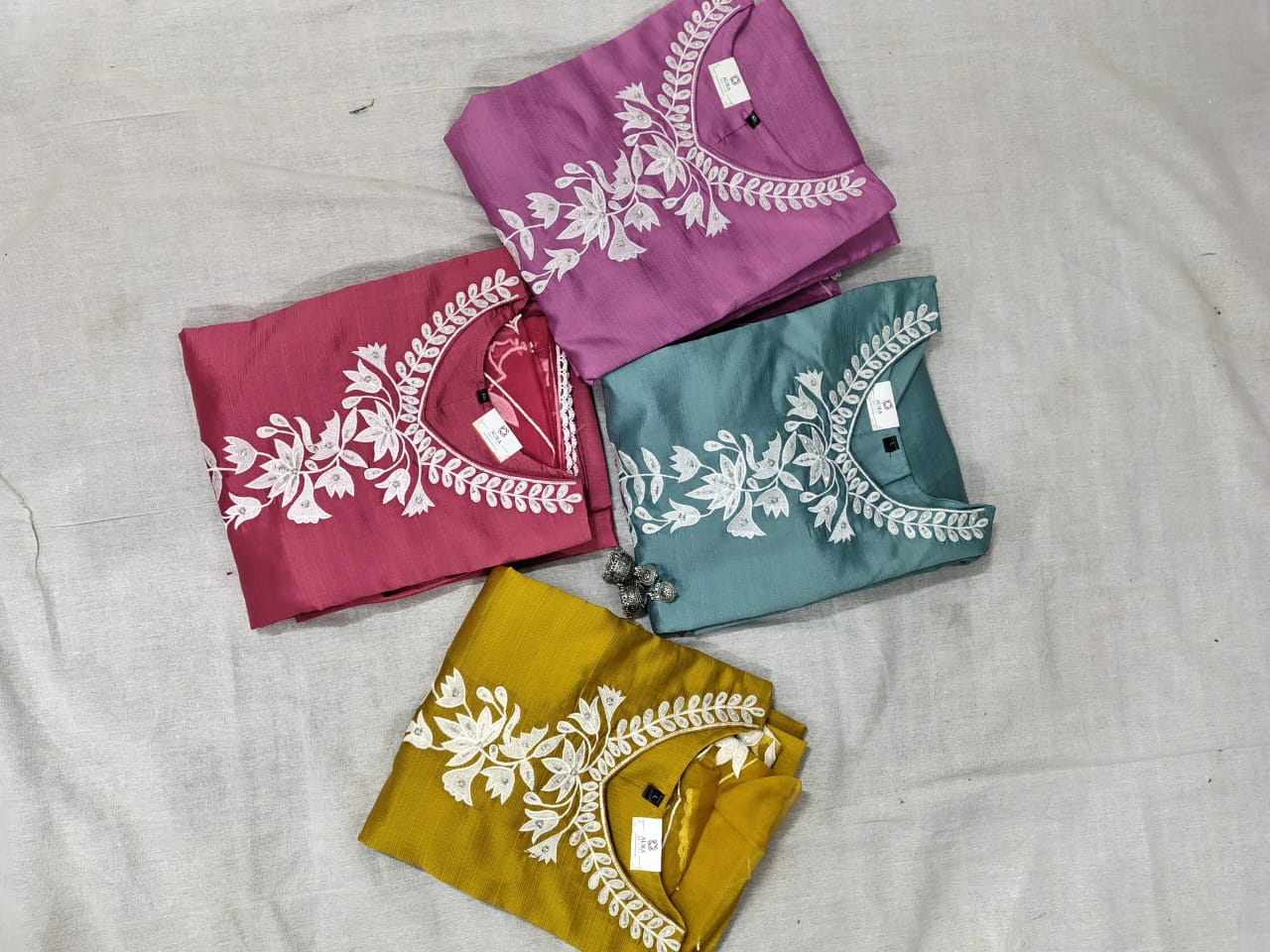 • Kurti: Tailored from high-quality Roman Silk, the kurti features a smooth, flowy texture with refined detailing. It offers a flattering fit suitable for festive occasions, office wear, or casual gatherings.