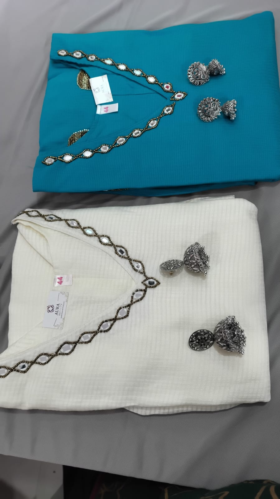Kurta Fabric: Cotton Blend Bottomwear Fabric: Cotton Blend Kurta Color: Pink Bottomwear Color: Pink Sleeve Length: Three-Quarter Sleeves Neck: V-neck Length: Above Knee Pattern: Embellished Print or Pattern Type: Embellished Bottom Type: Pants Fit/ Shape: A-line Occasion: Festive Net Quantity (N): Single Fabric: Premium Cotton Blend for all-day comforts Neckline: V-neck with elegants embroidery Sleeves: 3/4th sleeves with detailed borders Design: Dual bow embellishments on top for a chics appearance Bottom Type: Matching straight-fit pants Occasion: Perfect for daily wear, parties, festive events, and office styles Fit Type: Regular Fit – comfortable and stylish Wash Cares: Gentle machine wash or hand wash recommended Women cord set, pink coord set, embroidered top and pant set, cotton blend coord, trendy coord set for women, elegants office wear, festive outfit for women, daily wear set, stylish women’s suit set, two-piece outfit, modern ethnic wear, comfortable coord setjl Sizes: XL (Bust Size: 38 in, Shoulder Size: 18 in, Kurta Length Size: 38 in, Kurta Waist Size: 36 in, Bottom Waist Size: 36 in, Bottom Length Size: 38 in) L (Bust Size: 36 in, Shoulder Size: 17 in, Kurta Length Size: 36 in, Kurta Waist Size: 34 in, Bottom Waist Size: 34 in, Bottom Length Size: 37 in) Country of Origin: India