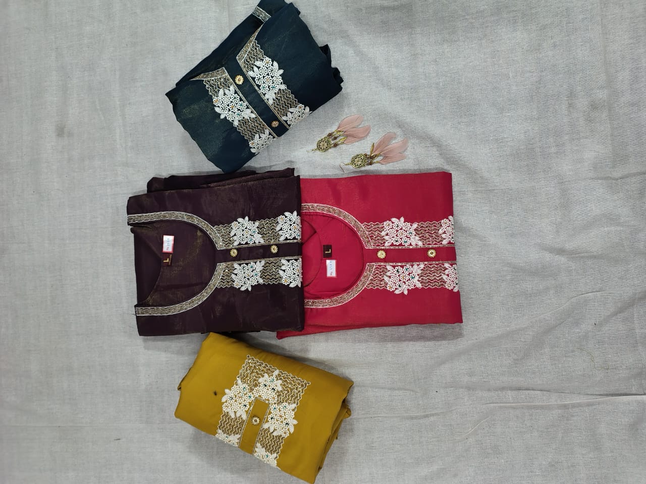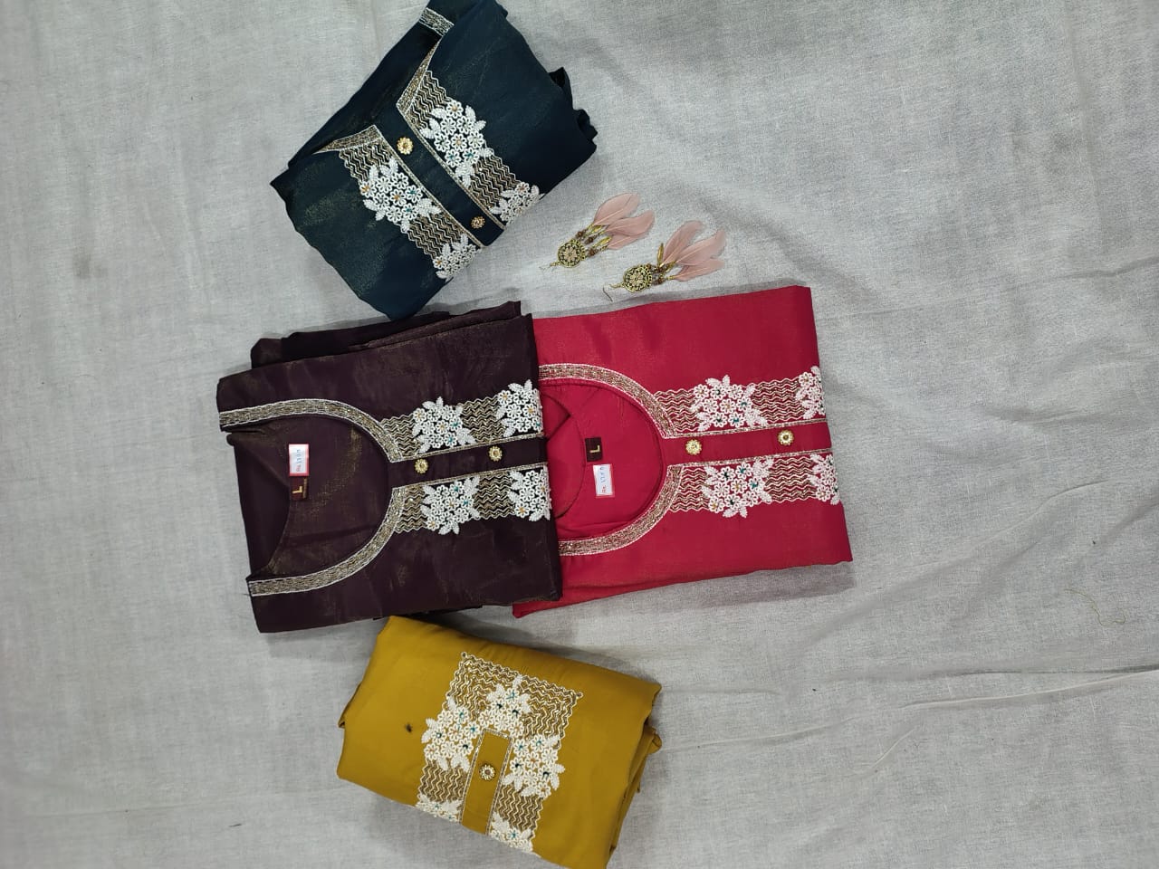 Step into timeless elegance with this beautiful teal blue kurta pant set, designed to give you a perfect blend of grace and comfort. The kurta features delicate white floral embroidery with subtle golden thread work on the front panel, giving it a rich and classy festive look. The round neckline with button detailing adds a refined touch to the overall design.